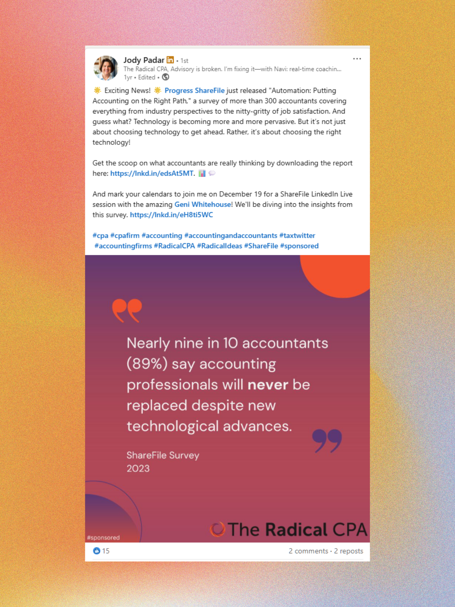 Partnered with leading accounting influencer Jody Padar and other industry experts to interpret results—elevating the report from data to actionable, trusted insights for the profession.