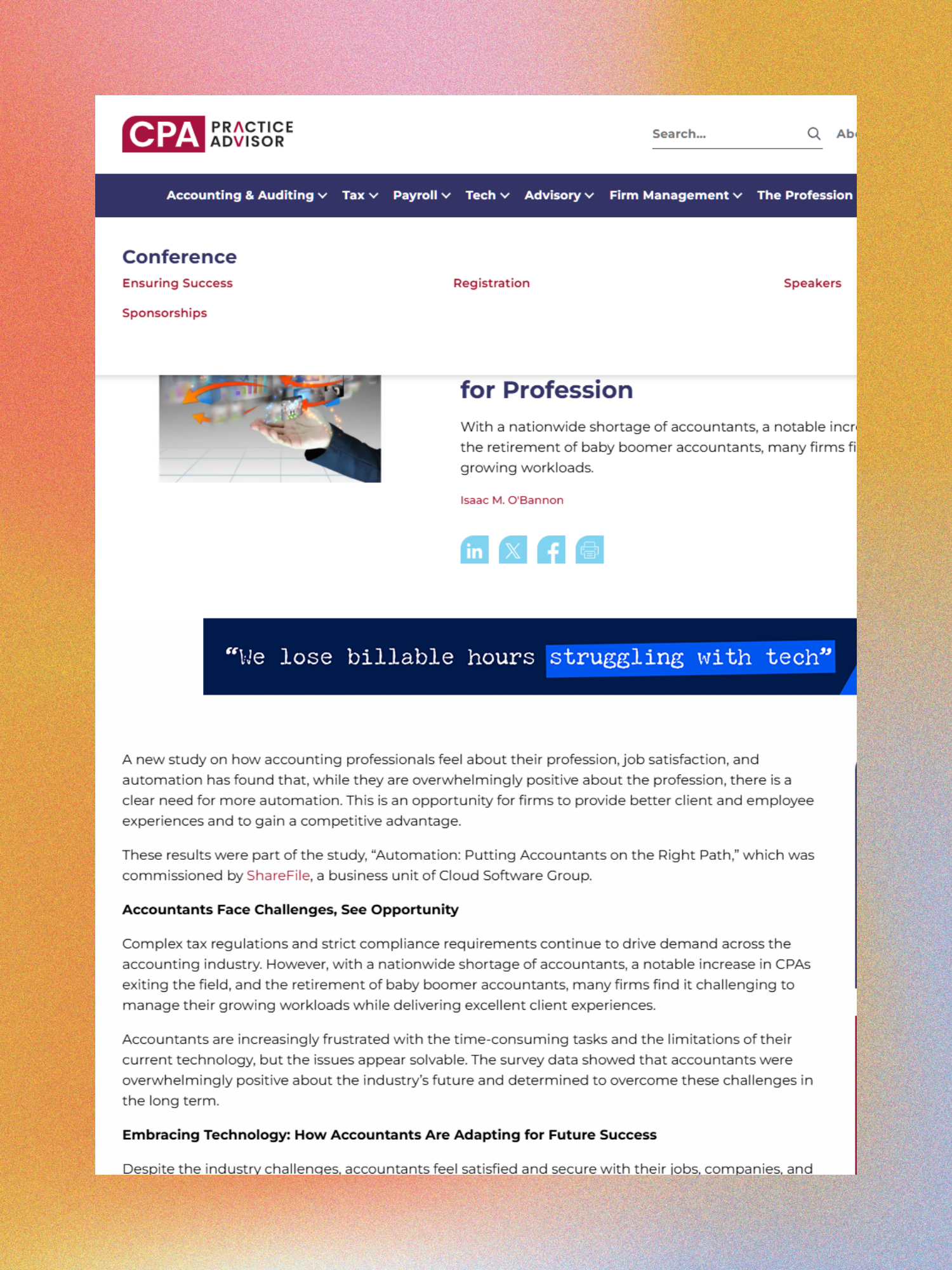 Featured in accounting trade press and business publications, expanding ShareFile’s industry presence and credibility.